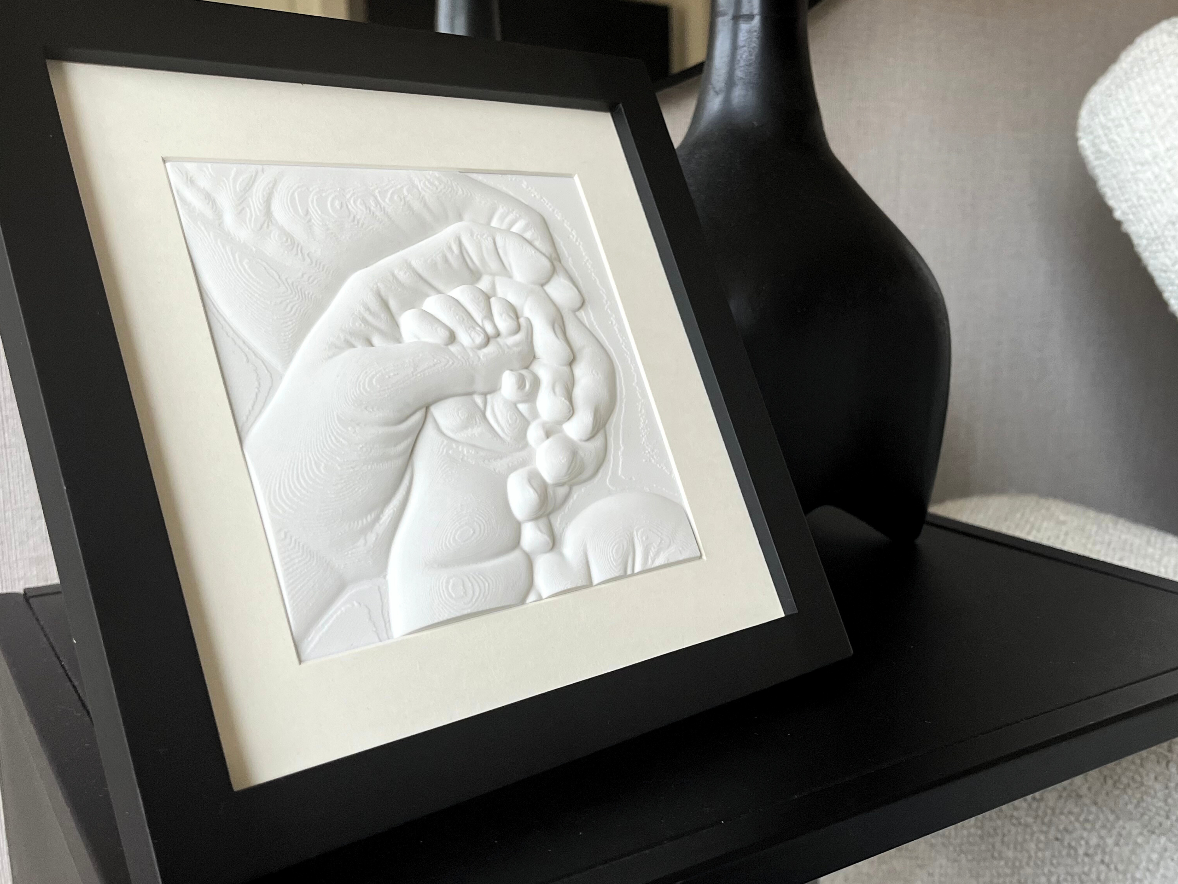 Ik kwam jullie tegen op facebook. Ontzettend tevreden met mijn 3D fotoprint en er door geraakt.. waarom.. omdat ik mijn vader vrij recent ben verloren.. ik wilde eigenlijk een handafdruk laten maken van onze handen maar de tijd haalde ons in waardoor dit niet meer is gelukt, gelukkig had ik wel nog een foto van onze handen die elkaar vasthielden. Deze foto heb ik nu laten printen bij jullie.. en jeetje wat een realistisch resultaat, naast een eeuwige herinnering nu ook iets tastbaars, je had mij niet blijer kunnen maken❤️Dank voor dit prachtige resultaat😁👍